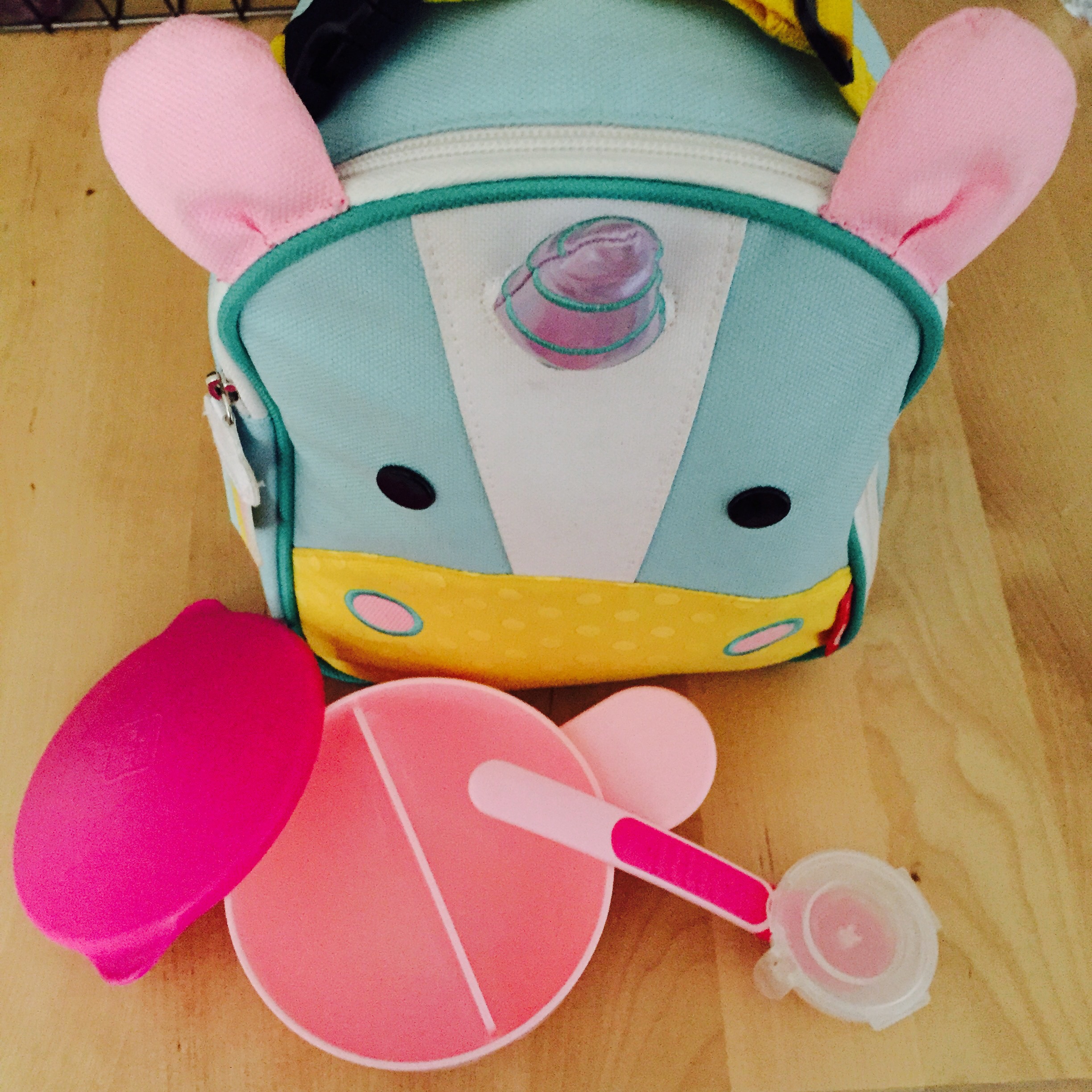 There is so many amazing lunch bags out ther, choice is very big. My favourite one will be the one made by SKIP HOP. They do an animal range which is the cuttest ever. We have two now: a zebra one and unicorn one. They are beautiful and so much fun for kids. Chloe loves to play with her bag!